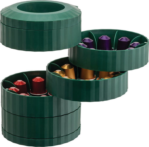 De Alessi Plissé Koffiecapsulehouder Groen is niet zomaar een keukenaccessoire. Deze capsulehouder is ontworpen door de gerenommeerde Italiaanse ontwerper Michele De Lucchi en combineert functionaliteit met een opvallend sculpturaal design. De vijf compartimenten openen zich met een ingenieus mechanisme dat elke koffiemoment tot een kleine beleving maakt. Ideaal voor liefhebbers van orde, design en koffie.