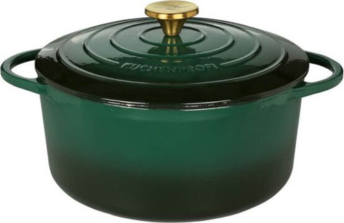 Deze ronde braadpan van Kuchenprofi in de kleur racing green is perfect voor wie graag kookt met kwaliteit en stijl. Het robuuste gietijzer warmt snel op en verdeelt de hitte gelijkmatig, ideaal voor smoren, sudderen, koken, braden en frituren. Dankzij de efficiënte warmteopslag kunt u het vuur na korte tijd lager zetten, wat energie bespaart en de aroma’s van uw gerecht behoudt. De pan is geschikt voor alle warmtebronnen, inclusief inductie, en kan ook in de oven tot 250 °C.