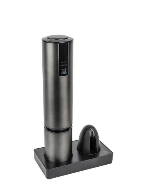 Peugeot heeft zijn uitgebreide expertise samengebracht in de innovatieve elektrische kurkentrekker Elis Touch, die wordt geleverd met een oplaadvoet en capsulesnijder. Dankzij de nieuwste lithiumionbatterij kan de kurkentrekker met één lading tot 80 flessen ontkurken en laadt hij volledig op in amper 2,5 uur. Met deze praktische tool wordt wijnflessen ontkurken een fluitje van een cent: plaats de Elis Touch op de hals van de fles en ze wordt automatisch ontkurkt. Nadien kan je de kurk met één druk op de knop verwijderen. Dankzij zijn elegante uitstraling en topprestaties is de Elis Touch een van onze absolute bestsellers!