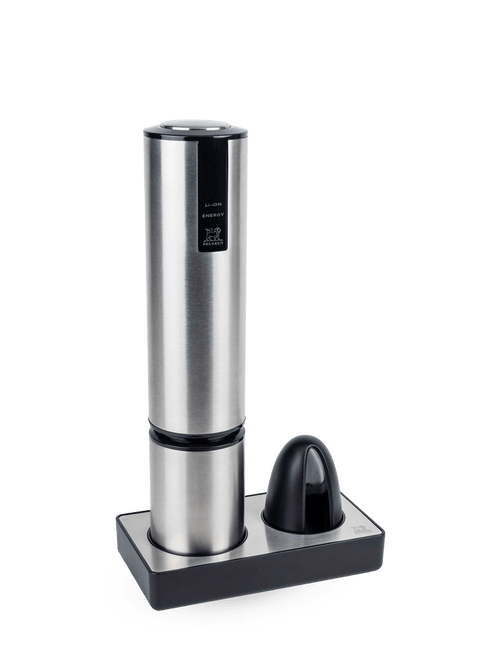 Wijnflessen ontkurken was nog nooit zo eenvoudig: je hoeft de Elis Touch alleen op de hals van de fles te plaatsen, en ze wordt automatisch ontkurkt. Nadien kan je de kurk met één druk op de knop verwijderen. Dankzij de nieuwste lithiumionbatterij gaat de Elis Touch extra lang mee (80 keer ontkurken) en laadt hij nog sneller op (2,5 uur). En met zijn elegante oplaadvoet en led-oplaadindicator is hij altijd klaar voor gebruik!