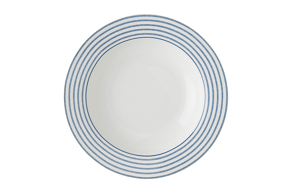 Laura Ashley Blue Candy Stripes Set 4 Diepe borden 22 cm Wit Porselein