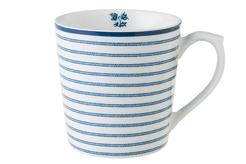 Laura Ashley Blue Candy Stripes Set 4 Mugs 0,35l Wit Porselein