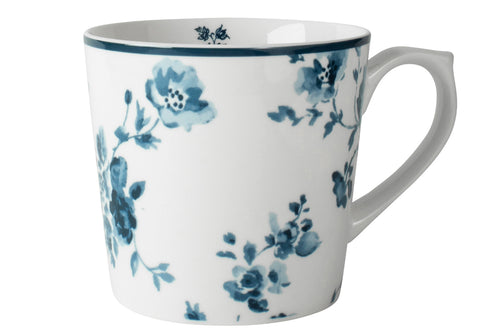 Laura Ashley Blue China Rose Set 4 Mugs XL 0,54l Wit Porselein