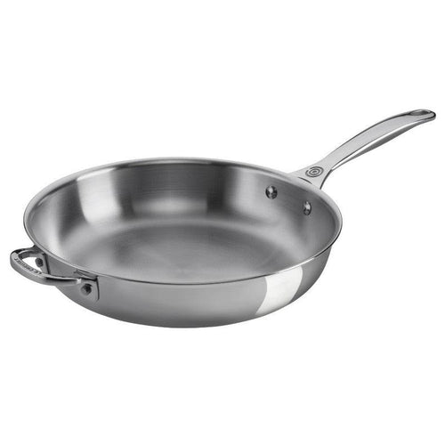 De Le Creuset RVS PLUS diepe koekenpan van 28cm biedt de perfecte combinatie van functionaliteit en stijl. Deze diepe koekenpan is ideaal voor het bereiden van diverse gerechten dankzij de uitstekende warmteverdeling en het ergonomische ontwerp.