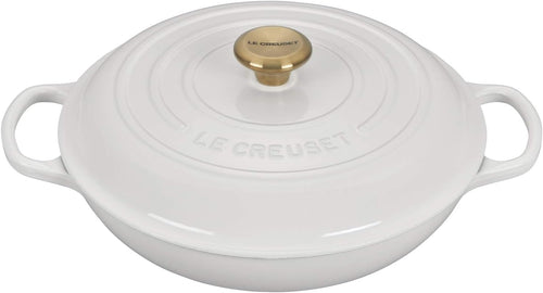 Le Creuset Campagnard Signature Rond met Goudkleurige Knop 30cm 3,5l Wit Gietijzer