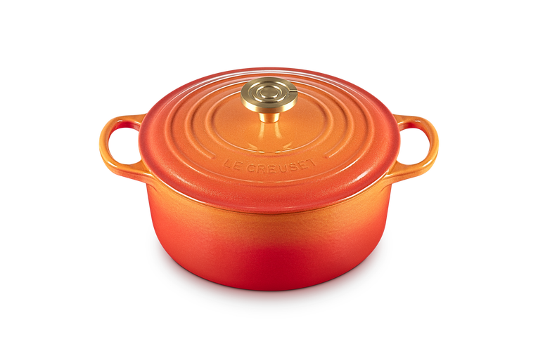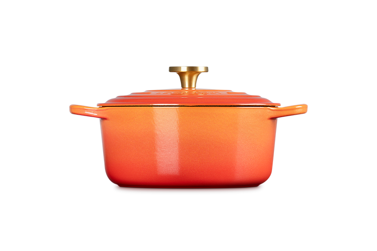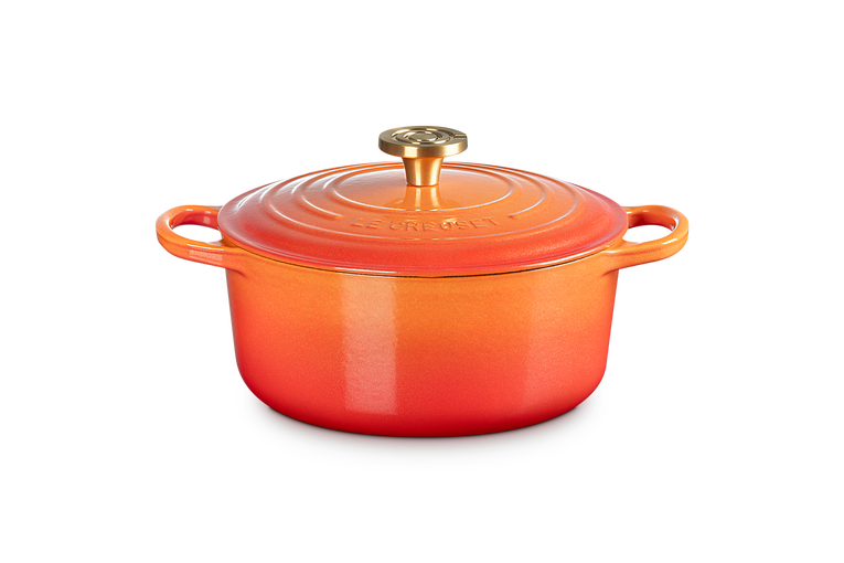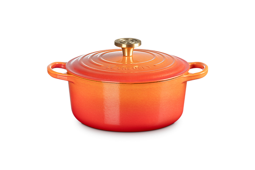 Le Creuset Braad-/Stoofpan Signature Rond Met Crucible Knop 24cm 4,2l - Flamme Dorée 100 jaar