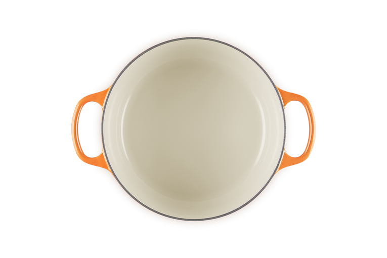 Gietijzer maakt deze Le Creuset braadpan een krachtige allrounder in de keuken. Het materiaal verdeelt de warmte gelijkmatig en houdt deze ook lang vast. Hierdoor is de pan ideaal voor langzaam garen, braden of sudderen. De binnenzijde van geëmailleerd gietijzer voorkomt aanbakken en zorgt voor eenvoudig schoonmaken. In combinatie met het verbeterde deksel wordt het vocht optimaal vastgehouden. De Flamme Dorée-afwerking voegt daar nog een visuele flair aan toe: warm, sprankelend en stijlvol.