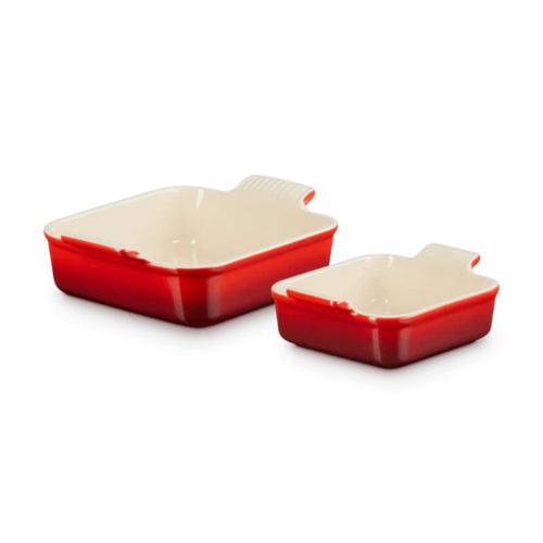 Bereid heerlijke gerechten met gemak en stijl met de Le Creuset ovenschaal set van 2 in Kersenrood.