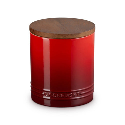 De Le Creuset voorraadpot Signature met houten deksel in kersenrood is ideaal voor het stijlvol bewaren van jouw ingrediënten. De pot is vervaardigd uit hoogwaardig aardewerk en sluit luchtdicht af dankzij het stevige houten deksel. Perfect om je keuken georganiseerd én elegant te houden.