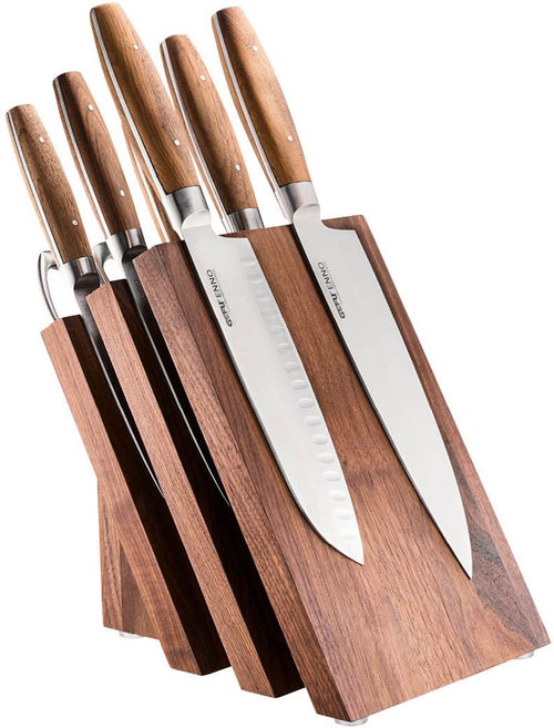 Een mooie set messen verdient een stijlvolle plek in jouw keuken. Het Gefu magnetisch messenblok ENNO is ontworpen voor zowel functionaliteit als uitstraling. Dankzij het elegante waaiervormige design blijven je messen overzichtelijk én makkelijk bereikbaar, terwijl het compacte formaat weinig ruimte inneemt op het aanrecht. Het stevige walnoothout en de krachtige magneten zorgen ervoor dat je messen veilig en netjes op hun plek blijven. Extra handig is het aparte compartiment voor een keukenschaar of aanzetstaal, waardoor je alles bij de hand hebt.
