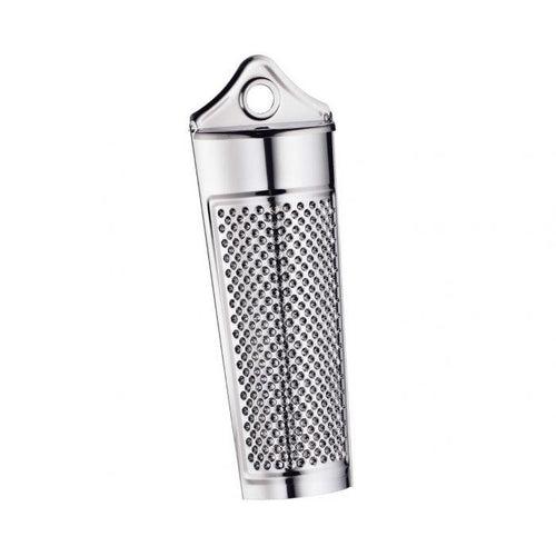 De KUCHENPROFI Nootmuskaatrasp CLASSIC combineert functionaliteit met een tijdloos ontwerp. Gemaakt van hoogwaardig roestvrij staal, biedt deze rasp duurzaamheid en betrouwbaarheid voor het raspen van nootmuskaat en andere specerijen. Met zijn slanke afmetingen van 12 cm x 6 cm x 6 cm past hij moeiteloos in je keukenladen of op je aanrecht, altijd klaar voor gebruik.