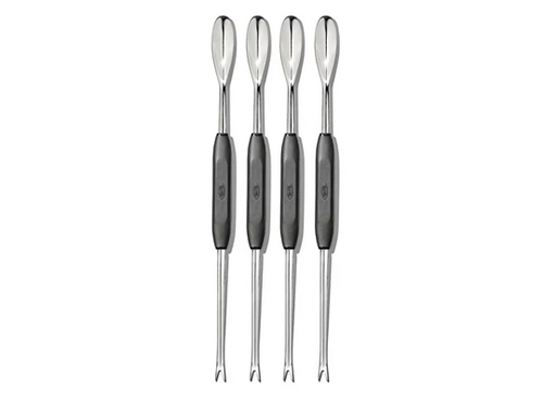 Eet kreeft of krab zonder gedoe met de Oxo Kreeftenhaak set. Deze set van 4 vorken – ook wel krablepels genoemd – is speciaal ontworpen om het vlees moeiteloos uit de schaal te halen. Dankzij het slimme, slanke ontwerp bereik je zelfs het lastigste hoekje van een kreeft of krab. Of je nu een ervaren schaaldierliefhebber bent of net begint: met deze Oxo kreeftvorken wordt het eten van schaaldieren een stuk eenvoudiger. Na gebruik reinig je ze zonder zorgen in de vaatwasser.