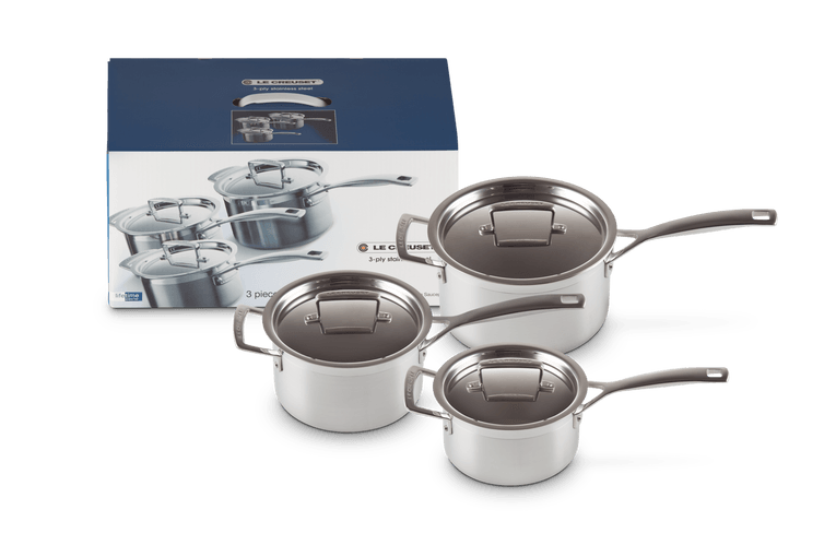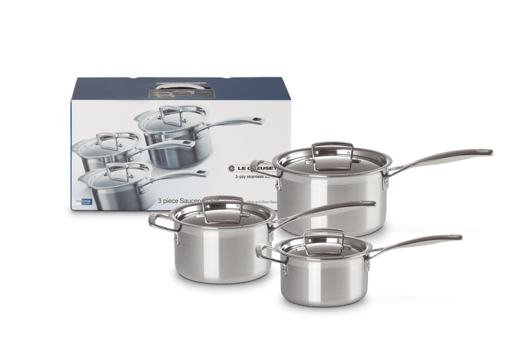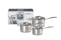 Le Creuset RVS set van 3 steelpannen, 16cm / 18cm / 20cm