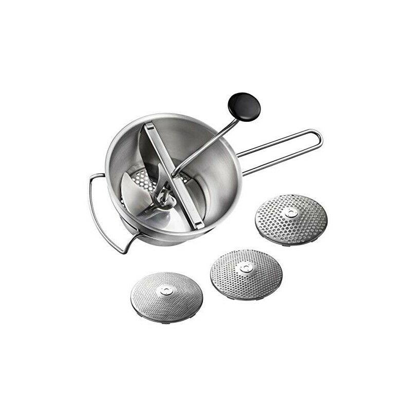 De Gefu Passe-vite - inox - Flotte Lotte is ideaal voor het maken van heerlijke puree, sauzen en soepen. Met zijn twee verwisselbare schijven (2mm en 3mm) kun je gemakkelijk verschillende texturen bereiken.