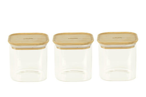 PEBBLY Set of 3 square glass stacking canisters - 800 ml
