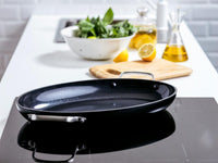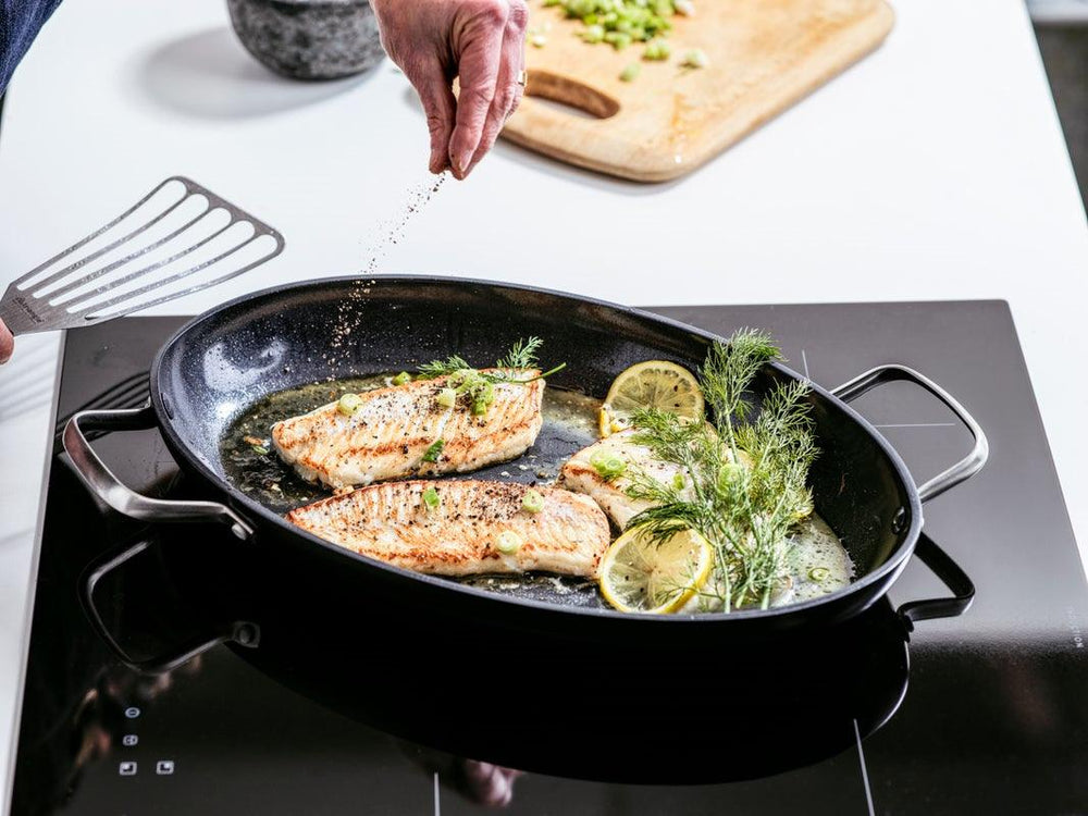 De GreenPan Copenhagen Vispan is de ideale keuze voor het bereiden van grote visgerechten. Met een royale diameter van 40 cm biedt deze pan voldoende ruimte om hele vissen of grote visfilets gemakkelijk te bakken.