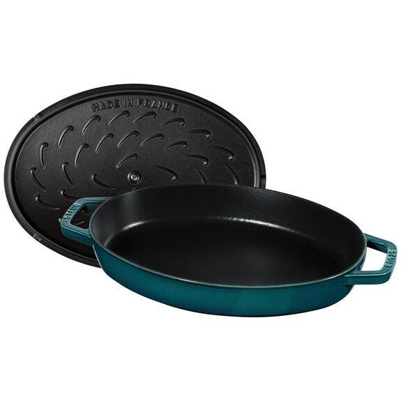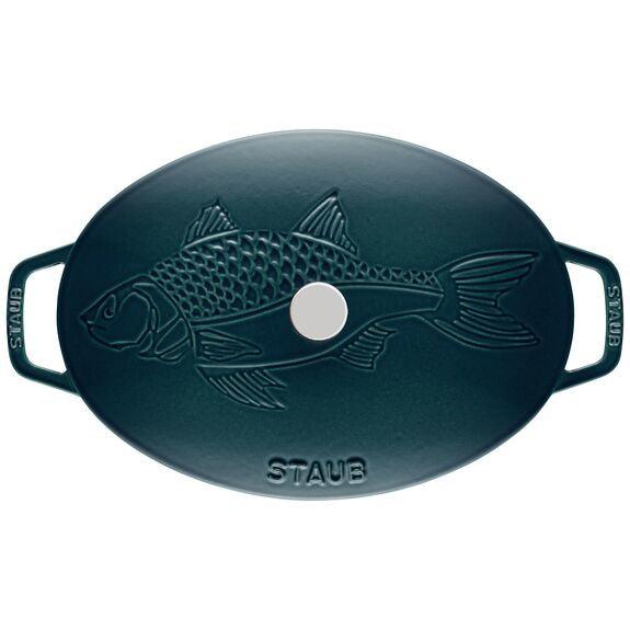 De Staub Vispan combineert een stijlvol eigentijds design met groot gebruiksgemak. De La Mer gietijzeren body zorgt voor een elegante uitstraling, perfect voor elke keuken.