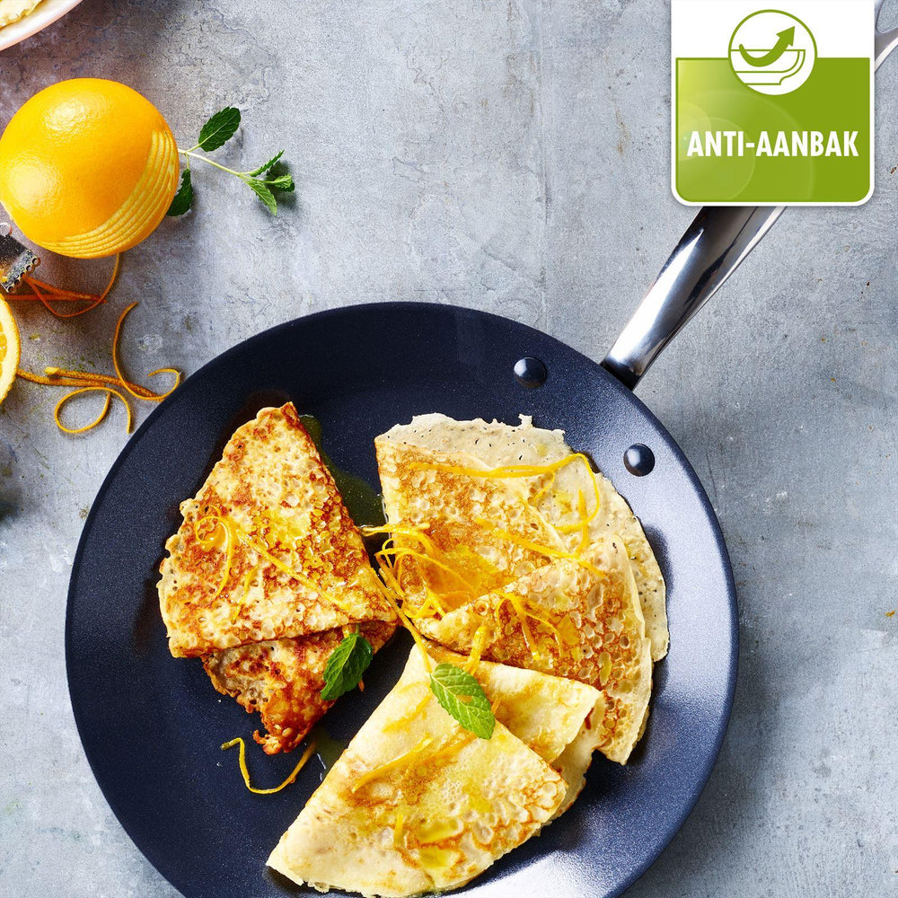 GreenPan staat bekend om zijn keramische antikleeflaag die vrij is van schadelijke stoffen zoals PFOA, PFAS, lood en cadmium. Hierdoor kun je met een gerust hart de heerlijkste pannenkoeken bakken zonder je zorgen te maken over je gezondheid.