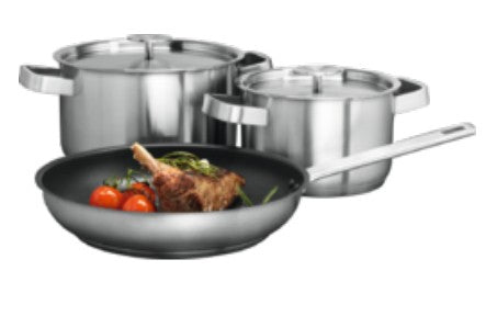 Breng smaak naar een hoger niveau met de driedelige AEG-kookset. Deze bestaat uit één koekenpan (24cm) en twee kookpotten met deksel (16cm en 20cm) en biedt u het juiste kookgerei voor het klaarmaken van vele recepten.
