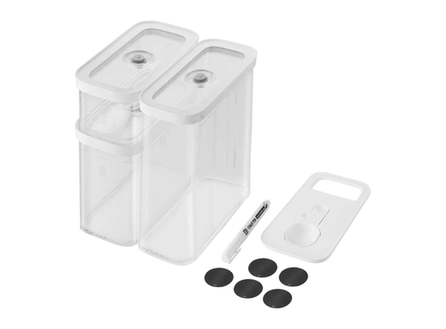 De transparant-witte afwerking van de Zwilling Fresh & Save Cube set voegt een vleugje elegantie toe aan elke keuken. Het is meer dan alleen een functioneel item - het is een stijlvol accessoire dat bijdraagt aan de esthetiek van je kookruimte.