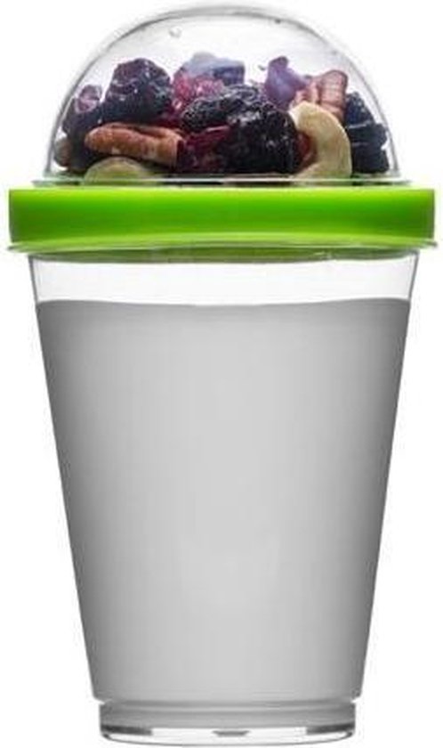 Met deze handige meeneem beker Fresh van Sagaform houd je je yoghurt gescheiden van je cruesli! Schenk de yoghurt in de beker en in de dop kun je je cruesli of bijvoorbeeld fruit kwijt. Wanneer je het op gaat eten mix je het door elkaar en zo heb je altijd een heerlijk frisse lunch. Afmeting: 15 x 9 cm Materiaal: kunststof Inhoud: 30 cl
