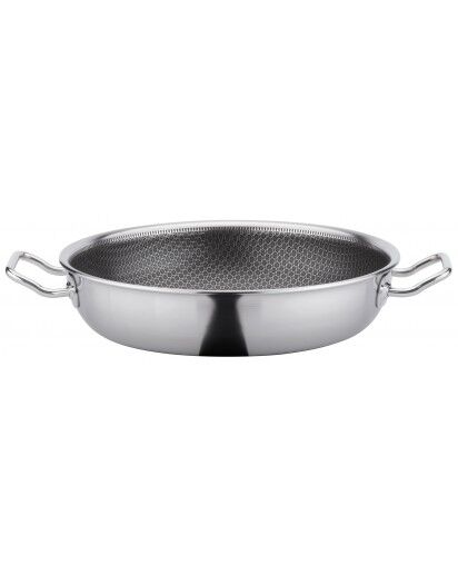 De keramische honinggraadlaag van de Spring Servierpfanne zorgt voor een superieur anti-aanbakeffect zonder het gebruik van schadelijke stoffen zoals PFAS. De combinatie van RVS en keramiek biedt uitstekende prestaties bij hoge temperaturen, ideaal voor het bereiden van vlees of vis. Bovendien is deze pan duurzaam en ontworpen voor dagelijks gebruik.
