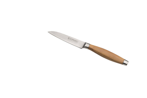 Schil, hak, snipper en snijd uw favoriete groenten met dit handige mes van 9 cm. Het lemmet is vervaardigd van hoogwaardig damaststaal en de handgreep van olijfhout geeft hem een comfortabele grip en een slanke, stijlvolle uitstraling. Dit is een mes dat u maaltijd na maaltijd zult gebruiken.