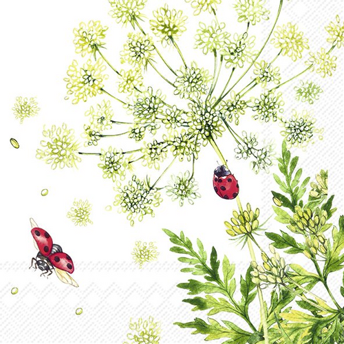 Deze servetten zijn versierd met schattige lieveheersbeestjes (ladybirds). Het ontwerp brengt een glimlach op je gezicht en past goed bij lente- en zomerfeestjes, picknicks of gewoon een gezellig diner.