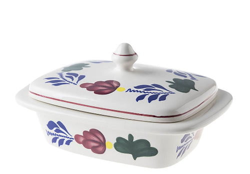 Royal Boch Boerenbont Boterpot 17,5X12cm Crème met decor Aardewerk