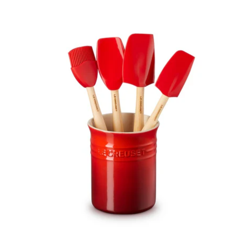 Le Creuset Silicone set met 4 Premium spatels in Spatelpot Kersenrood