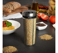 De kruidendispenser is gemaakt van roestvrij staal en glas. Het product heeft een lengte van 19 cm.