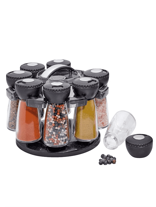 Het KUCHENPROFI Kruidenrek is voorzien van 8 glazen potjes, elk met een roestvrijstalen deksel, waardoor je kruiden langer vers blijven. Het rek is compact en neemt weinig ruimte in beslag op je aanrecht. Dankzij het draaiende ontwerp heb je altijd gemakkelijk toegang tot al je kruiden en specerijen. Het stijlvolle zwarte ontwerp past perfect in elke keuken en zorgt ervoor dat je altijd georganiseerd bent tijdens het koken.