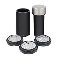 De Microplane Specialties Universeel molen met drie bladen in zwart en roestvrij staal is een veelzijdig keukengereedschap dat perfect is voor het malen van verschillende ingrediënten. Of je nu kaas, noten, chocolade of specerijen wilt malen, deze molen levert altijd een consistent en fijn resultaat dankzij de hoogwaardige messen van Microplane.