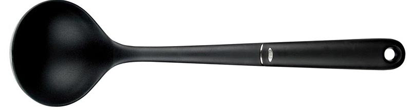 Word een uitstekende kok met het juiste kookgerei! De OXO Nylon Soeplepel is perfect voor het roeren van soepen, sauzen, stoofschotels en chili. Al ons nylon kookgerei is gemaakt van hittebestendig nylon waardoor deze gebruikt kunnen worden op elk oppervlak. De kleine antislip handvatten zijn comfortabel voor zowel kleine als grote handen en geschikt voor verschillende kookstijlen. De roestvrijstalen afwerking maakt ze zeer modern en ideaal voor het serveren van maaltijden.• Deze soeplepel is perfect voor het roeren van soepen, sauzen, stoofschotels en chili.
