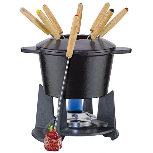 De Spring Grenoble fondueset is eenvoudig in gebruik en robuust van kwaliteit. Het geëmailleerde gietijzer zorgt voor een gelijkmatige warmteverdeling en een goede warmtebehoud. De gelbrander maakt het mogelijk om de temperatuur nauwkeurig aan te passen. De acht vorken met kleurmarkering zorgen ervoor dat iedereen zijn eigen vork makkelijk herkent.