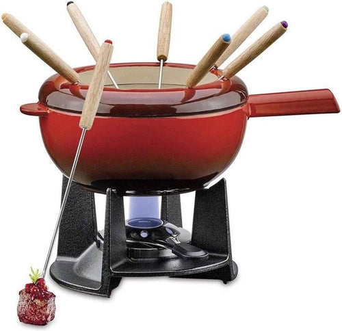 - Verpakkingsinhoud: Fonduepan, gietijzeren onderstel, 8 fonduevorken en brandpasta-houder