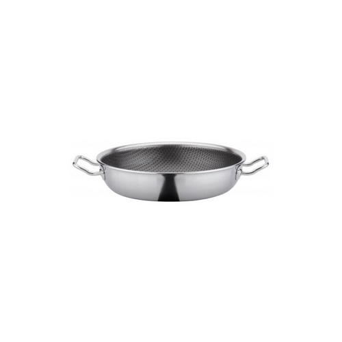 De Spring Serveerpan XL Cut Resist Pure van 28 cm is ontworpen voor zowel koken als stijlvol serveren. De pan is gemaakt van hoogwaardig roestvrij staal, wat zorgt voor een optimale warmteverdeling en langdurige duurzaamheid. Dankzij de Cut Resist-technologie is de pan krasbestendig, zelfs bij gebruik van metalen keukengerei. Dit maakt de pan ideaal voor intensief gebruik in de keuken. Met een maximumtemperatuur van 250°C is de pan ook geschikt voor gebruik in de oven, wat zorgt voor veelzijdigheid bij het bereiden van diverse gerechten.