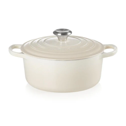 De Le Creuset Gietijzeren ronde braadpan in Meringue 24cm 4,2l combineert de superieure prestaties van gietijzer met een elegante, verfijnde kleur. Perfect voor het bereiden van grotere gerechten zoals stoofschotels, soepen en gebraad.