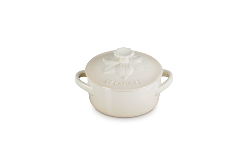 De Le Creuset Jardin mini-braad-/stoofpan van 10 cm in de kleur Meringue is een stijlvolle en speelse toevoeging aan je tafel. Met een inhoud van 250 ml is deze kleine cocotte ideaal voor het serveren van voorgerechten, desserts of individuele porties. Het sierlijke deksel maakt het openen een verrassing voor je gasten. De pan is gemaakt van hoogwaardig aardewerk en afgewerkt met een duurzame glazuurlaag. Een echte blikvanger tijdens feestelijke gelegenheden of een verfijnde aanvulling op je dagelijkse servies.