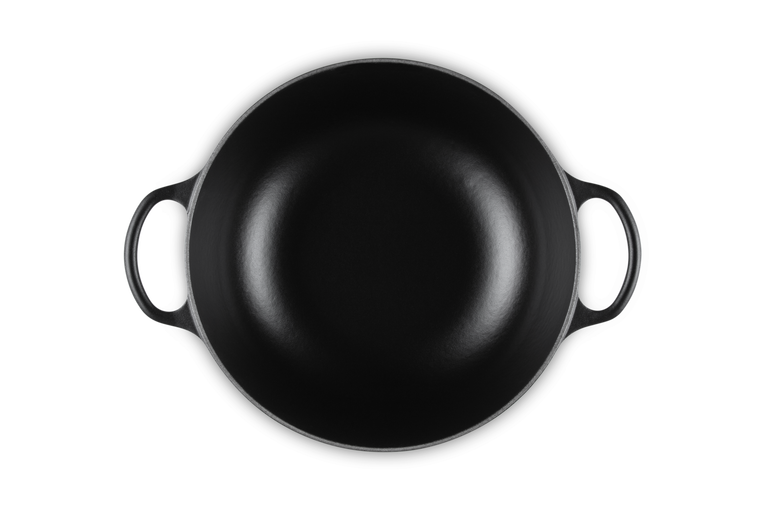 Deze pan combineert traditioneel vakmanschap met moderne technologie. Het gietijzeren materiaal zorgt voor een optimale warmteverdeling en houdt warmte langer vast, wat resulteert in heerlijk malse gerechten. De krasbestendige emaillaag maakt de pan extra duurzaam en eenvoudig te reinigen, terwijl de strakke Mat Zwarte afwerking een luxe uitstraling geeft.
