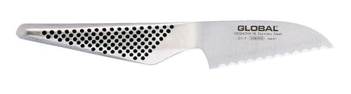 Het Global Gs9 Tomatenmes 8cm is ideaal voor het snijden van tomaten en andere zachte groenten. Het gekartelde lemmet zorgt voor moeiteloos snijden zonder te scheuren, wat essentieel is voor het behoud van de textuur en smaak van je producten.