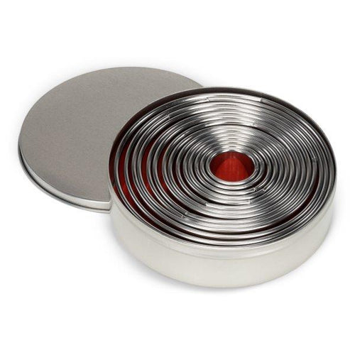De Patisse Uitduwvormpjes Rond zijn een veelzijdige set van 14 ronde uitstekers in diverse maten, geleverd in een handig opbergblik. Gemaakt van roestvrij staal, zijn deze uitstekers perfect voor het maken van strakke, ronde vormen uit koekjesdeeg, fondant, marsepein en meer. Ideaal voor zowel creatieve als functionele bakprojecten.