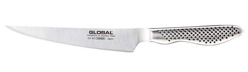 Het Global Gs82 Sushi/vismes 14,5cm is specifiek ontworpen voor het snijden van sushi en andere delicate vissoorten. Het lange, slanke lemmet zorgt voor een nauwkeurige en schone snede, wat essentieel is voor het behoud van de delicate textuur en smaak van rauwe vis.