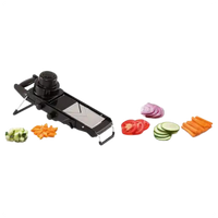 De Weis Mandoline in zwart kunststof en inox is een veelzijdige en duurzame keukenhulp, perfect voor het snel en nauwkeurig snijden van groenten en fruit. Deze mandoline combineert functionaliteit en stijl, ideaal voor elke thuiskok en professionele chef.