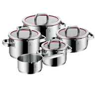 De WMF Function 4 Pannenset 5-delig is een uitgebreide set van pannen met 4 kookpotten en een steelpan. De pannen zijn gemaakt van roestvrij staal, wat ze stevig maakt, maar ze hebben wel even tijd nodig om op te warmen.