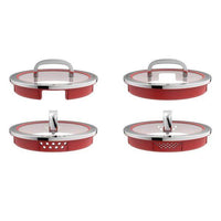 Deze 5-delige set bestaat uit: 3 hoge kookpannen met deksel (16 cm, 20 cm, 24 cm), 1 lage kookpan met deksel van 20 cm en 1 steelpan van 16 cm. Dit biedt je een veelzijdigheid aan opties voor al je kookbehoeften.