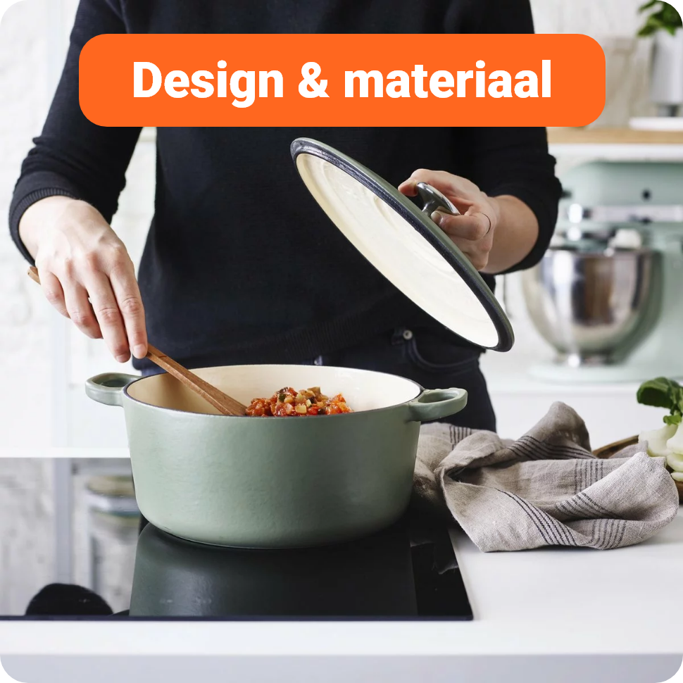 De Bourgogne pan valt op door z’n stevige, karaktervolle look. Hij is gemaakt van duurzaam geëmailleerd gietijzer – goed voor een warme, rustieke uitstraling én voor een gelijkmatige warmteverdeling. Je vindt ‘m in verschillende formaten en kleuren, dus er is altijd eentje die past bij jouw kookstijl (én keuken).