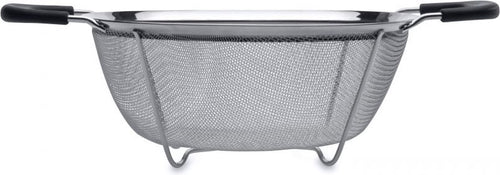 De Berghoff Essentials Zeef 19,5 cm is een veelzijdig keukengerei dat onmisbaar is bij het zeven, spoelen of afgieten van ingrediënten. Het fijne gaas in combinatie met de stevige constructie zorgt voor nauwkeurig en comfortabel gebruik. Dankzij de rubberen rand heb je extra grip, zelfs wanneer je werkt boven een kom of pan.