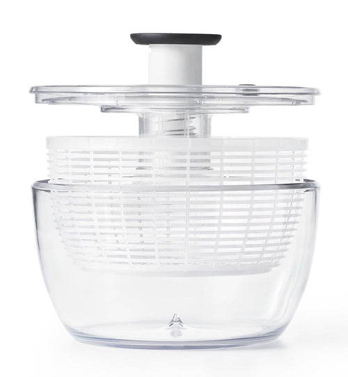 • Kleinere versie van de OXO Slacentrifuge• Eenvoudige te bedienen met één hand• Gepatenteerd pompmechanisme en gepatenteerde remknop• Zachte antislip knop kan worden vergrendeld bij opbergen• Antislip ring en brede bodem houden de kom stevig op het aanrecht• Mand kan afzonderlijk worden gebruikt als vergiet• Elegante transparante kom is ideaal voor opdienen• De platte deksel maakt gemakkelijk opstapelen mogelijk wanneer het product niet wordt gebruikt• Transparant deksel kan uit elkaar worden gehaald voor een eenvoudige reiniging• Inhoud: Kom: 2,9 l. mand: 2,3 l• Geschikt voor het bovenste rek van de vaatwasmachine• BPA-vrij