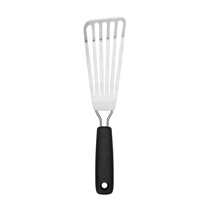 Deze OXO Spatel met sleuven is perfect voor het bereiden van vis. Met het slanke blad kom je gemakkelijk onder de vis om hem vervolgens te draaien of te serveren.